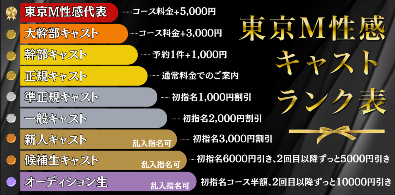 ※幹部キャストの為、1件のご予約に付き特別指名料プラス1,000円がかかります。